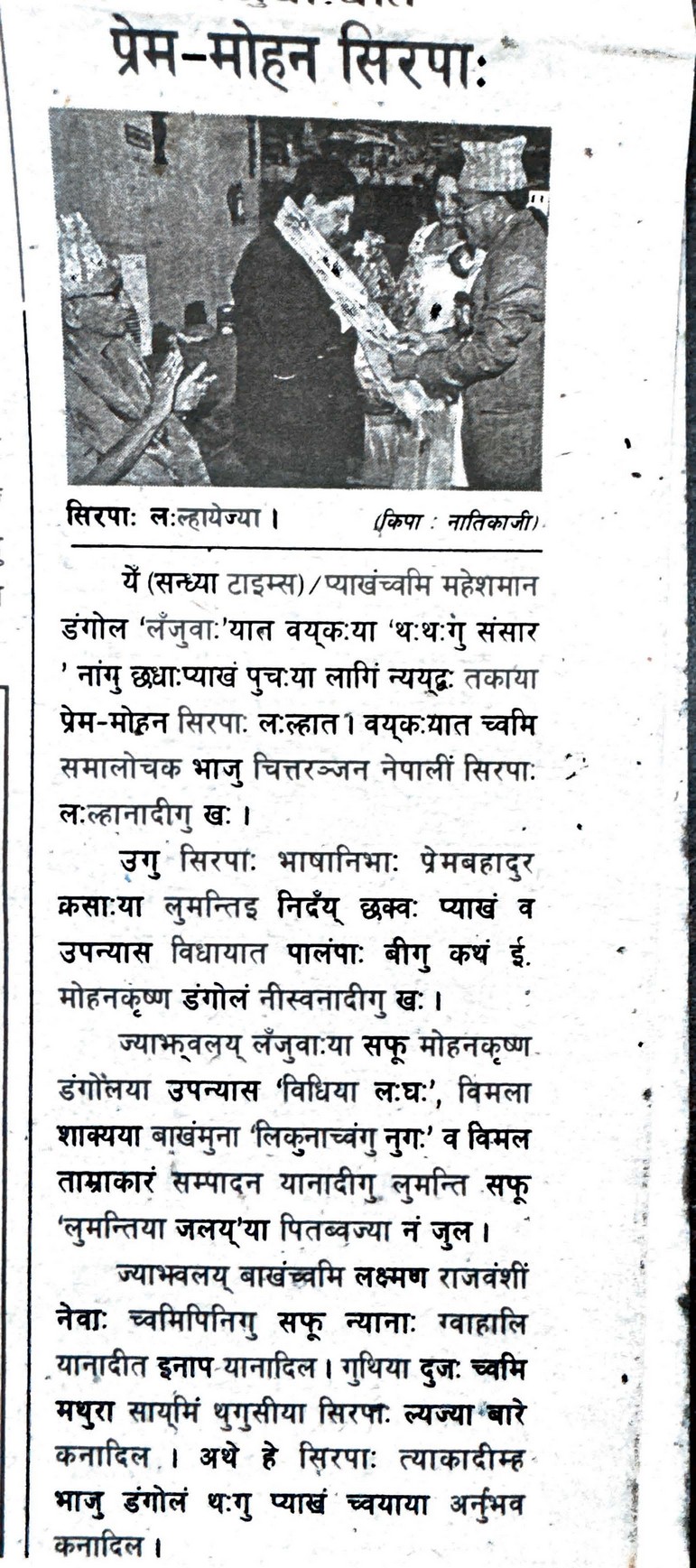 प्रेम-मोहन सिरपा: प्याखंच्वमि महेशमान डंगोल यात - सन्ध्या टाइम्स